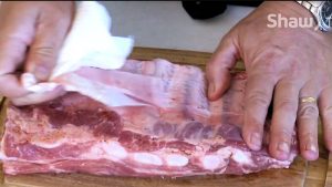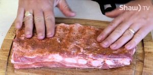 There are two basic results for good barbecued ribs, fall of the bone and bite off the bone where you can bite the meat and it pulls from the bone but doesn’t fall off. As She Who Must Be Obeyed likes bite of the bone, that is what I usually make. However, making fall of the bone ribs with the 3-2-1 method is a perfect way for beginner barbecue users to learn to make great ribs. I wanted to do some ribs for my ShawTV East Kootenays Community TV program, “You Can Make It”. 3-2-1 ribs were my choice for the shoot.