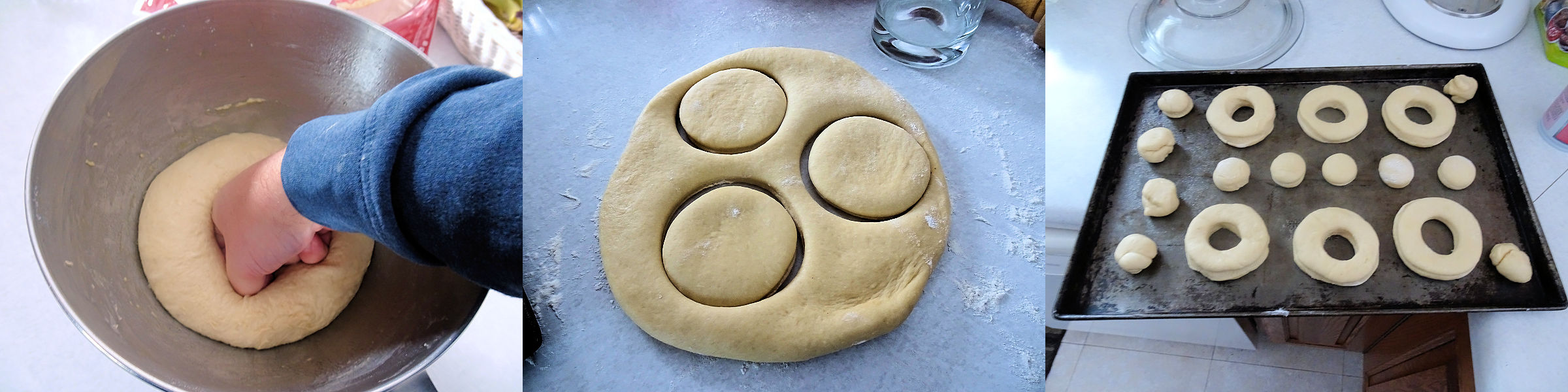 Put the donuts and holes on a tray and cover with a tea towel. Put in a warm place to rise for about 1 hour.