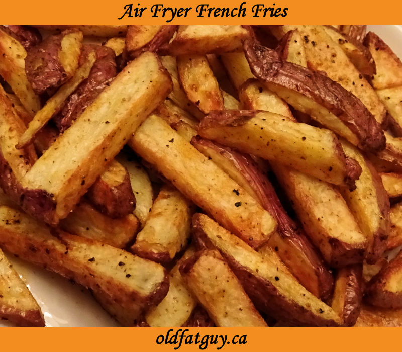 Most of the air fryer recipes toss potatoes in oil and then cooked them in the air fryer. When I learned to make French fries, we soaked hand cut potatoes in water to remove excess starch. Then we threw them in the deep fryer for a minute or two to par-cook them and let them cool. Then we would finish them in the deep fryer. The two part cooking process gave creamy soft interiors with a crispy surface.