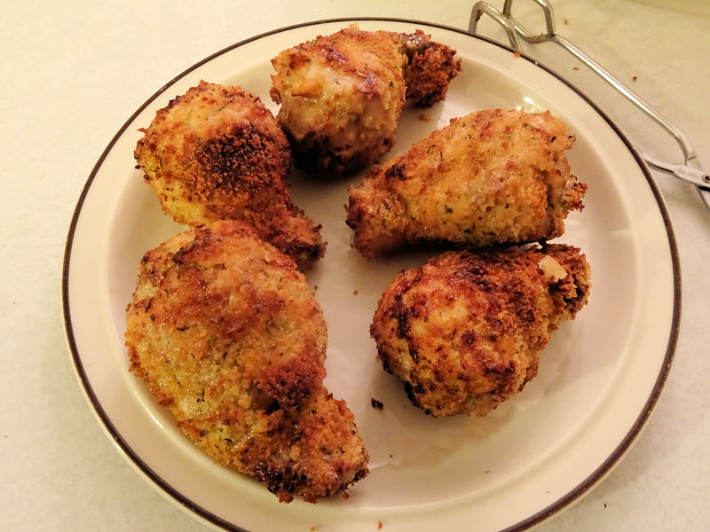 These were very tasty. The Panko breadcrumbs gave a nice crispy coating. The stuffing was moist and had a nice flavour from the sun-dried tomatoes and herbs. It was a treat to eat the drumsticks with a knife and fork without the bone in the way!