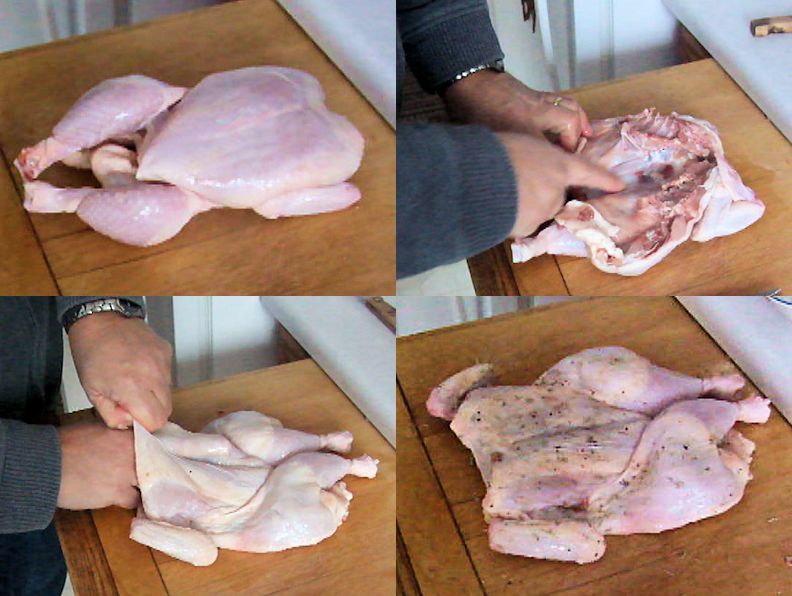 I started by spatchcocking the chicken. This is a procedure that removes the backbone and breast bone so that the chicken lays flat. See the video at the end for the technique. I then slowly worked my fingers under the skin on the breast of the bird being careful not to rip the skin. I then mixed the seasonings together and rubbed them over both sides and under the breast skin.