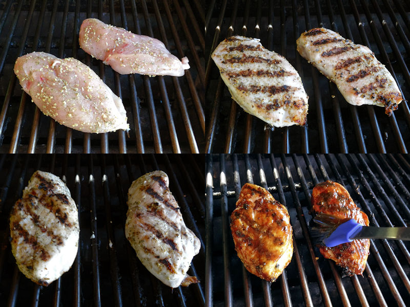 I brush the breast with barbecue sauce before turning it a third time and then brushing the other side. Cook it for 5 more minutes.