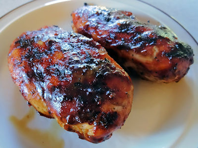 This is so tasty. The chicken breast remains moist and putting the sauce on for the last five minutes gives it time to glaze the chicken without burning. I do this often.