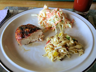Here is recipe you should have in your back pocket if you have a gas grill. It makes a moist tasty boneless skinless chicken breast without a lot of preparation or time. I did this one on my Weber Genesis Grill.