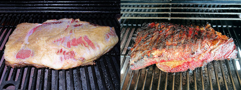I preheated my Louisiana Grills smoker with oak pellets to 230 F and put the brisket in it to smoke for 4 hours.