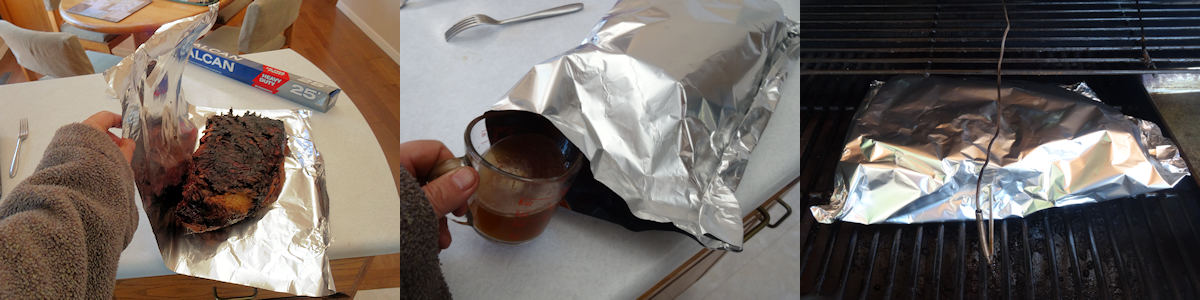 - Wrap the brisket in foil and put the beef stock in the foil pouch. Seal the pouch.