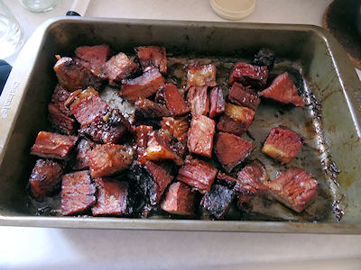 - Cut the point to one inch cubes and put them in a pan. Toss with the reserved rub.