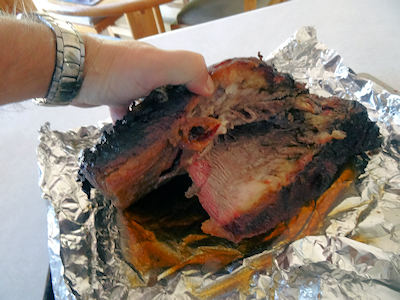 - Separate the flat from the point. Re-wrap with foil putting any excess juice in the foil. Wrap in towels and put it back in the cooler.