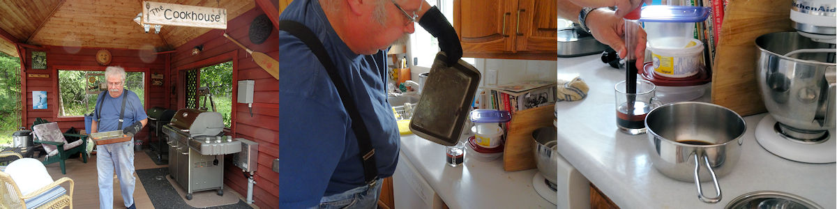 I took the pan with the juices into the house and poured the liquid into a clear cup. I sucked the juices from below the fat with a turkey baster and put it in a small saucepan.