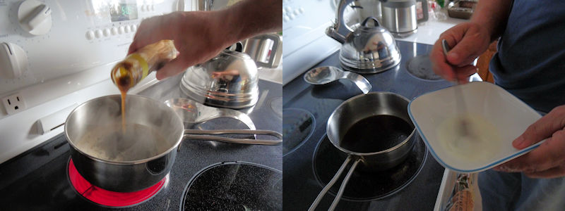 - Mix the cornstarch and water into a slurry and stir into the sauce.
