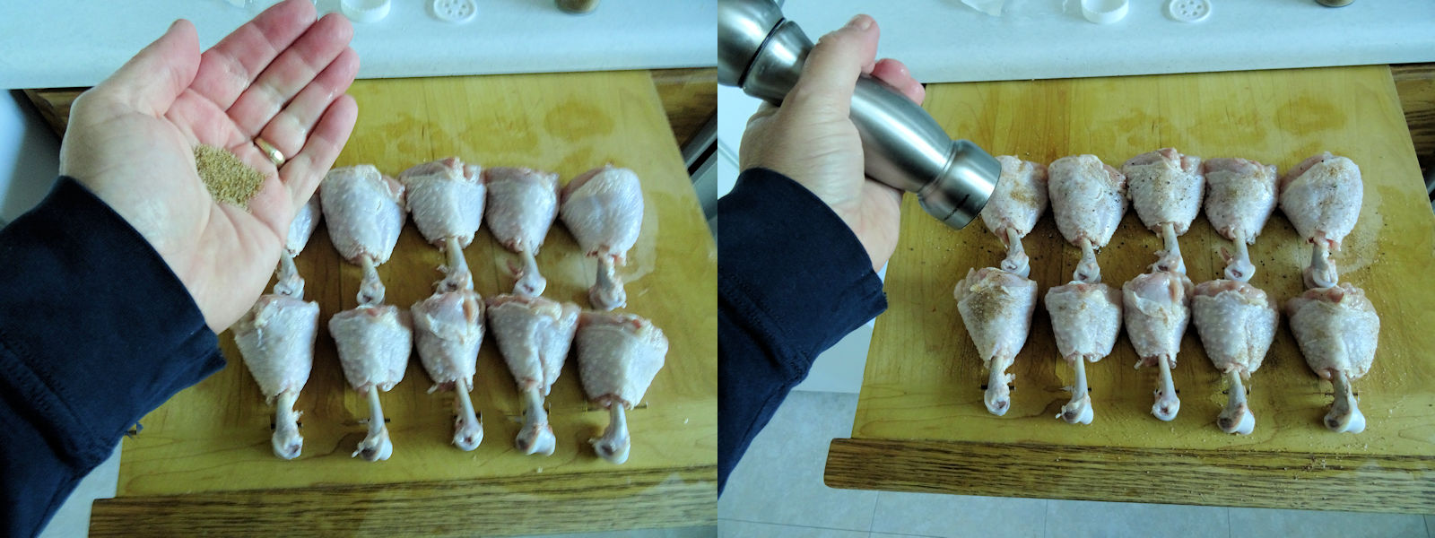 6. Sprinkle both sides of the drumsticks with celery salt and grate pepper over them.