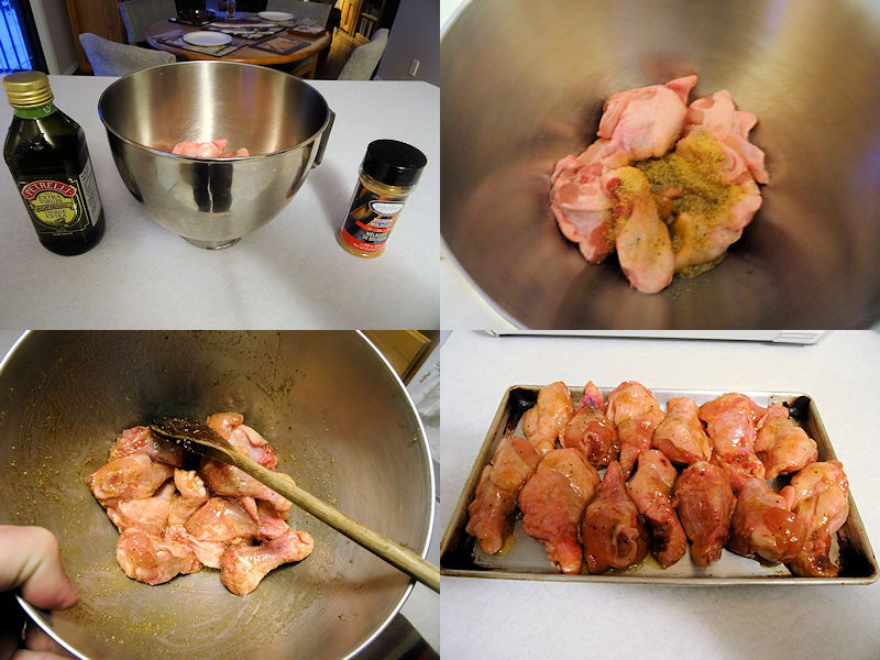 I tossed 13 drumettes with 25 ml of the seasoning mix and 25 ml of olive oil.
