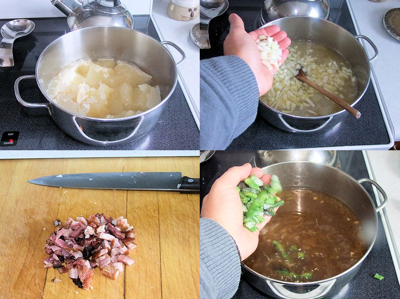 I chopped up 1 1/2 cups of onions. I didn’t have any celery so I added 1/4 teaspoon celery seed. If you have celery, add 1/2 cup chopped celery. I also added 1/2 cup chopped up bacon ends from my home made bacon. You could use ham instead. All these are added to the stock with 1 1/2 teaspoon of Cajun Seasoning Mix. The brand I used was Clubhouse but there are many to choose from.