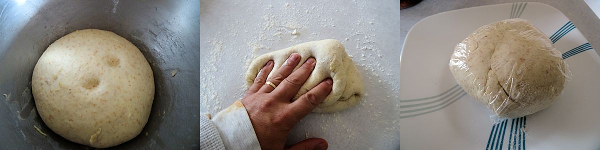 - Put the dough on the counter and knead several times to take out any large air bubbles.