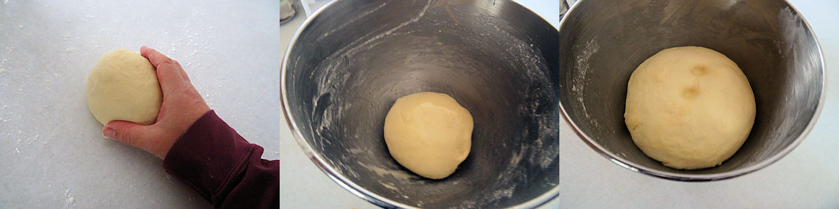 - Form the dough into a ball. Grease the bowl and put the ball in the bowl, turning it over.