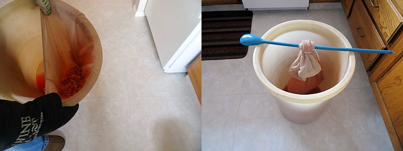 I tie my bag over a food grade container I use to ferment my home made wine in. Let the bag hang for 8 hours to overnight. Do not squeeze it or you will get cloudy jelly.