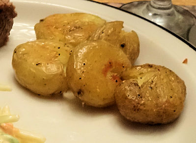 These are a potato lovers potato. The oven roasting doesn’t brown the skins but makes them crispy. The interior of the potatoes are creamy and smooth. This is an easy way to make a showy potato dish.