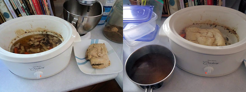 After that, I took the turkey and juices out. I put the turkey back in the unplugged crock pot and covered it.