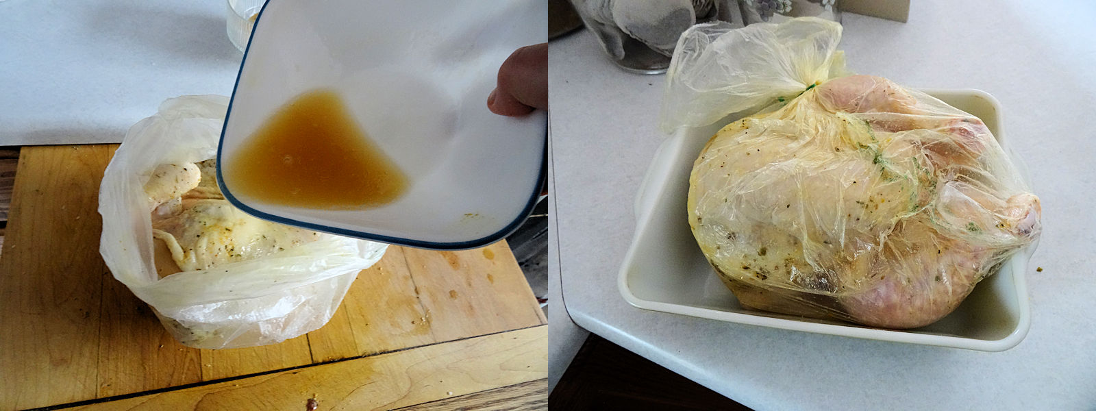 - Put the chicken in a plastic bag and pour the marinade over it. Refrigerate for 3 hours, turning occasionally.