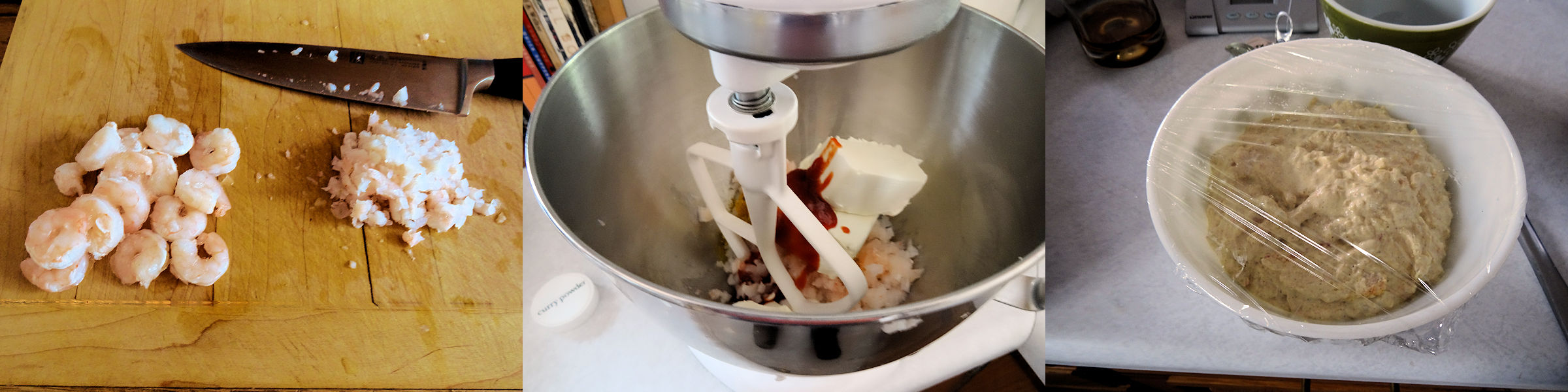 - Spread half the shrimp mixture over a tortiila, leaving one inch of the edge of the tortilla near you uncovered.
