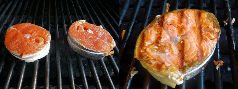 - 2 salmon steaks, 3/4 to 1 inch thick