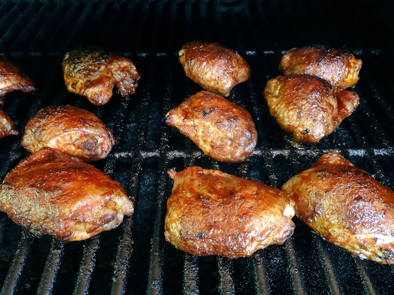 I cooked for 20 minutes more until the thighs were a nice colour. It may take a bit longer in some smokers and depending on the size of the thighs. Mine were quite small. I made sure the internal temperature of the thighs were over 165 F.