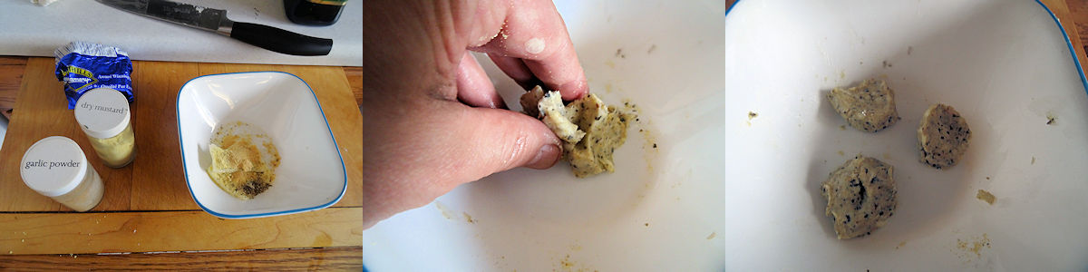Mix 5 ml (1 teaspoon) of garlic powder, 2 ml (1/2 teaspoon) ground pepper and 1 ml (1/4 teaspoon) dry mustard into 25 ml (2 tablespoon) cold butter.
