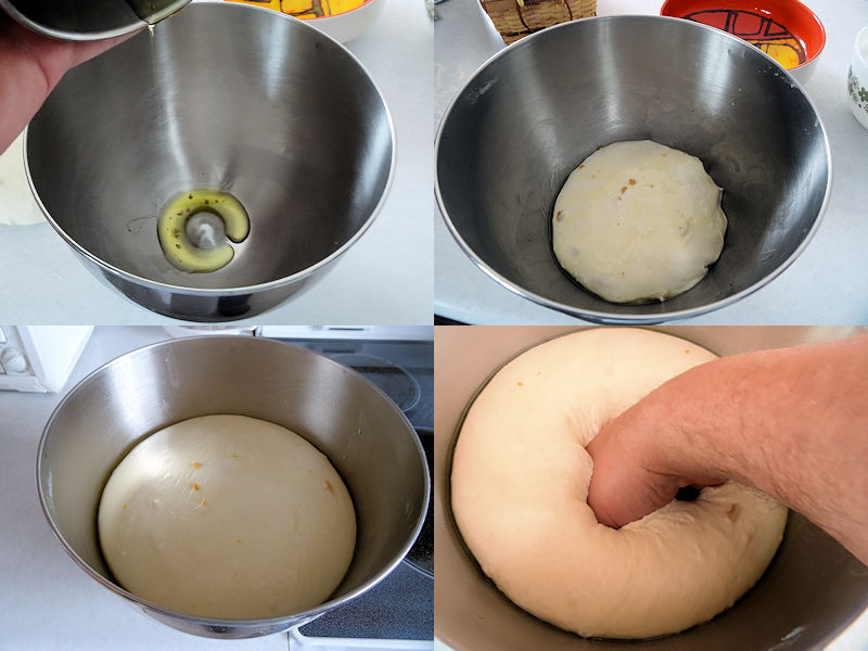 - Put 15 ml (1 tablespoon) olive oil in the bottom of the bowl. Put the dough in and turn to coat with oil.
