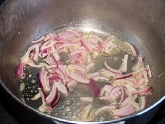 In a large pot over medium heat, melt 30 ml (2 tablespoons) of butter or margarine. When it starts to foam, throw in the onions and garlic and saute for 2 minutes.