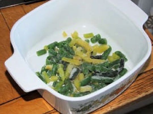 I increased the heat to high to bring it to a boil. While it was getting up to temperature, I chopped up 375 ml (1 1/2 cups) of green and yellow beans that I had grown (you do grow your own vegetables, don’t you?). You can use carrots, peas, broccoli, or whatever vegetables or you like.