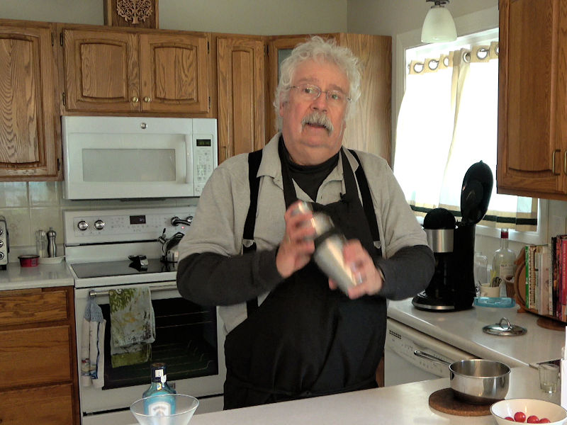 I put the lid on the shaker and shook until the shaker was well chilled, almost too cold to hold on to.