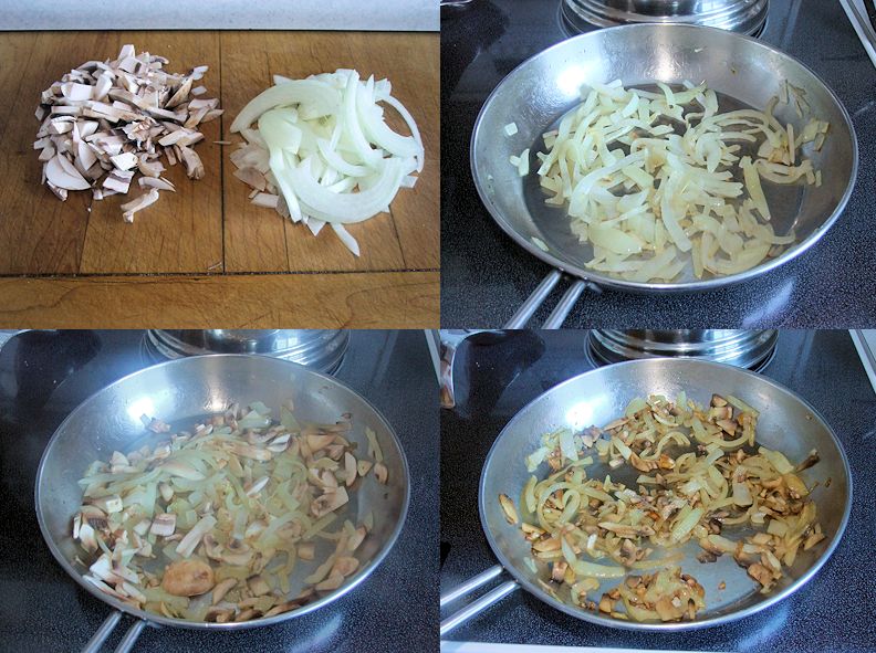 In a large skillet or the pan you cooked your roast in, heat the oil over medium low heat. Add the onions and stir until they just start to get some colour around the edges, about 10 minutes. Add the mushrooms and stir until the onions just start to get a little golden, about 10 minutes. You are not trying to brown or crisp the onions or mushrooms, just give them a little colour.