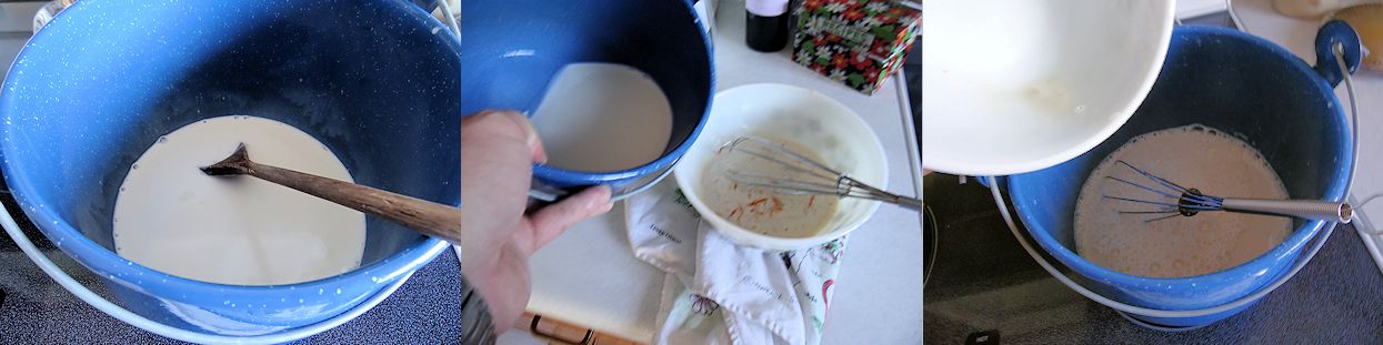 5. Pour the milk into the egg mixture in a thin stream, whisking constantly.