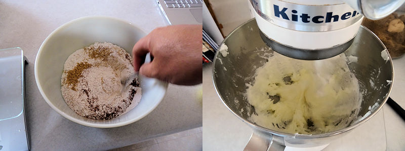 I mixed the dry ingredients together. Then creamed the shortening with the eggs and molasses.