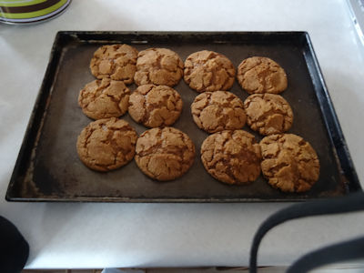 These are absolutely marvelous. They have just the right blend of a crispy exterior and soft centre. There is a nice rich molasses sweetness with the spiciness of the ginger and cinnamon. I love these cookies! The way they disappeared at the meeting it seems many others do too!
