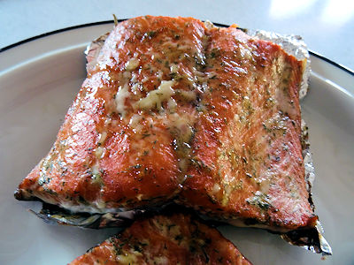 In my last post I advised this salmon recipe would be my next post. I just hadn’t got around to it until now. Let me assure you that the weather being perfect for golf and gardening had nothing to do with it.