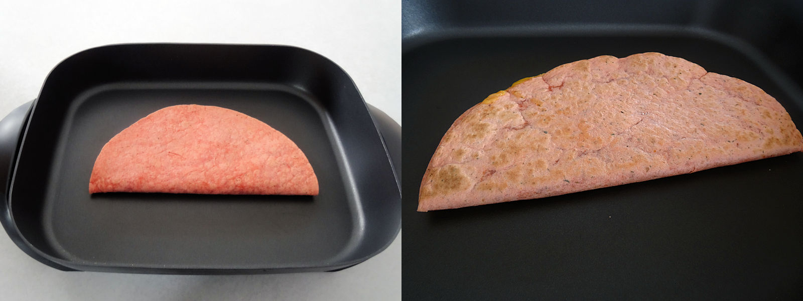 I folded the mayonnaise side over the meat and cheese and put it in a fry pan heated to medium high heat. I cooked for 4 to 5 minutes, until some golden spots formed. I flipped the quesadilla and cooked for 4 to 5 minutes more.