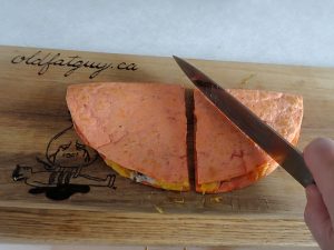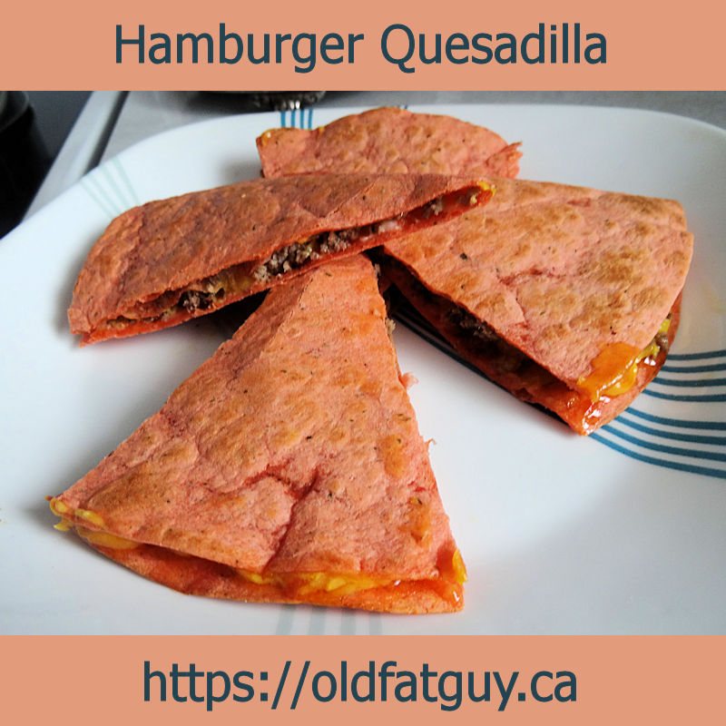 I like quesadillas but never thought to do a post on them. I don’t know why. However, I had some left over 10 inch tortillas and a left over cooked hamburger patty. Lightning struck or one of my few remaining synapses fired, I’m not sure which. Why not use them to make a Hamburger Quesadilla? I couldn’t think of a reason why not so here is how I made it.