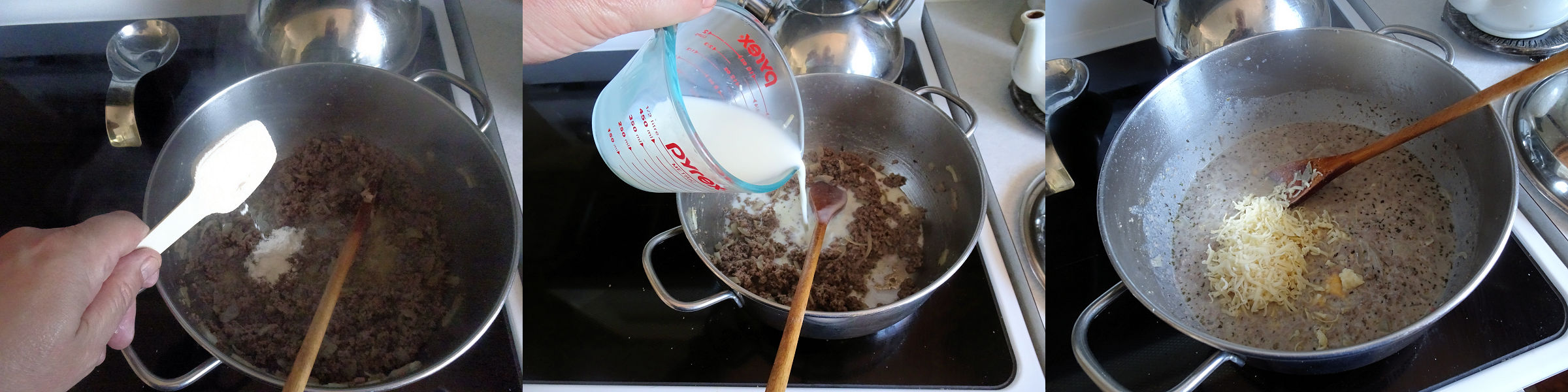 I added 25 ml (2 tbsp) of flour and stirred until it coated the meat and mixed with the fat.