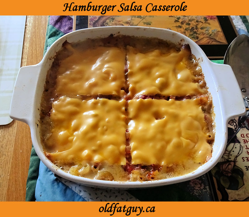 The only thing not frozen was some hamburger. I decided a casserole with a touch of jazz would be comforting and invented the Hamburger Salsa Casserole.