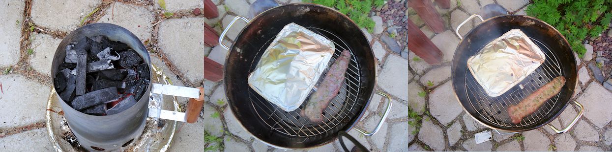 I got my WSM Mini fired up and running at a temperature of about 375 F. I put a tray of Quick Grilled Potato Cubes on the grill for 30 minutes. Then I put the tenderloin on and cooked it for about 10 minutes and turned it. I cooked it to an internal temperature of 153 F and that took about 20 more minutes.