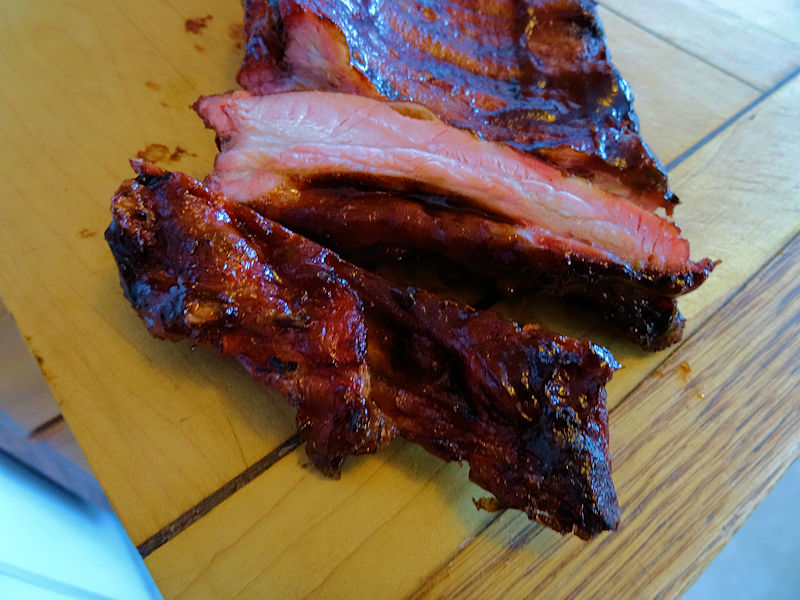 I took the ribs off the grill and cut into single ribs.