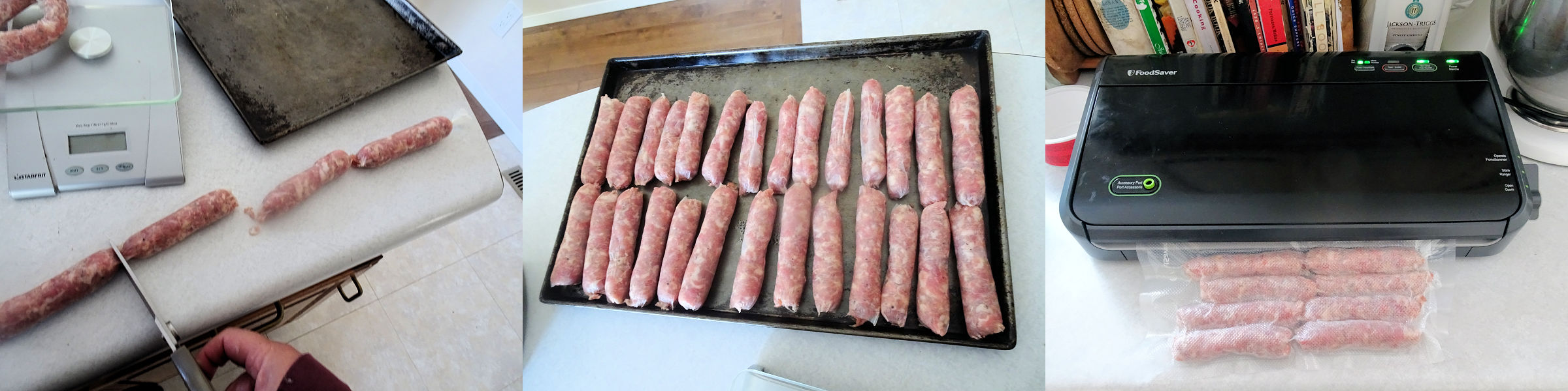 I cut at the pinches and put the sausages on a tray. I froze them solid and then vacuum sealed them for storage. If you don’t freeze them first the pressure from the vacuum sealer can flatten them.