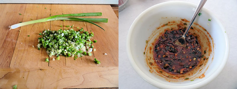 • 5 green onions chopped fine (green and white portions)