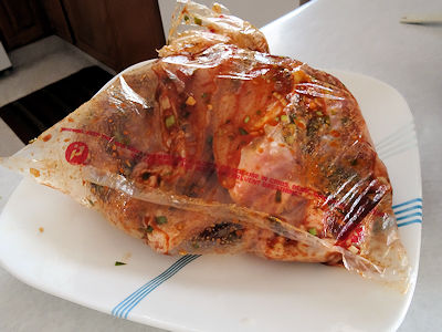 6. Put the chicken in a large plastic bag and add any remaining marinade.