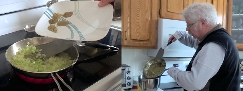 - Sauté the celery and onion until soft, about 5 minutes.