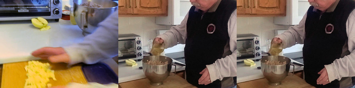 I chopped 1/2 an apple that had been peeled and cored and added it to the cubes.