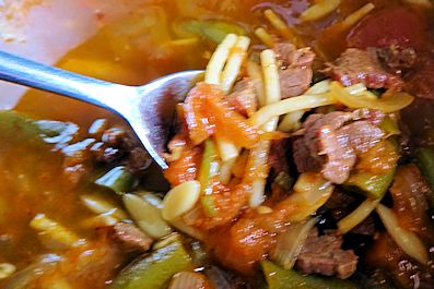 I always like to have some homemade soup around. When I was younger and used to go hiking, I would make soup out of beef jerky because it was light to carry. What I discovered was it makes a great soup and has a great texture. So I decided to try a home version.