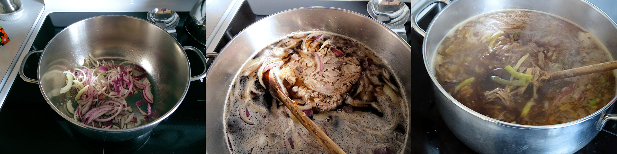 I had always thought the rich texture and flavour of pulled pork would lend itself to Korean flavour profiles. This recipe introduces some Korean flavours to a soup made rich and hardy by the pulled pork.