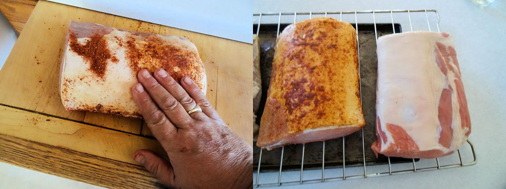 11. Rub the chipotle over the loin. Put it, uncovered, in the fridge overnight to dry out.